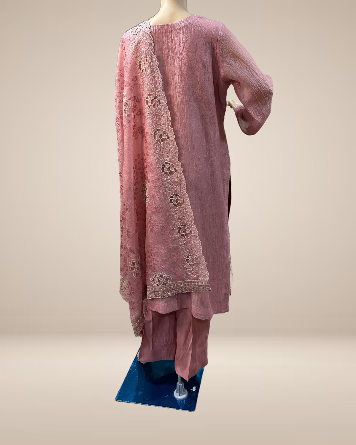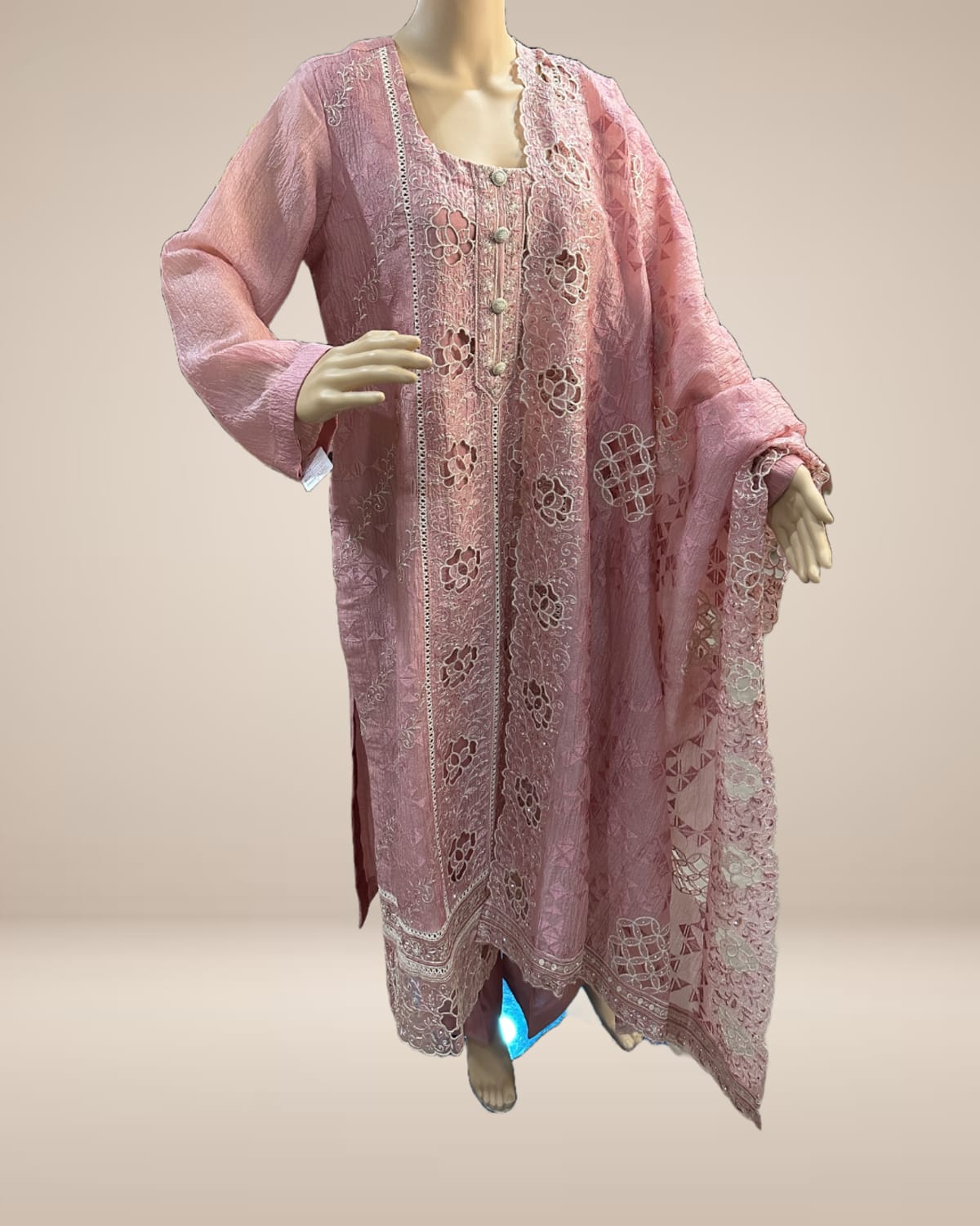 Blush Pink Fully Embroidered Tissue Silk 3-Piece Suit
