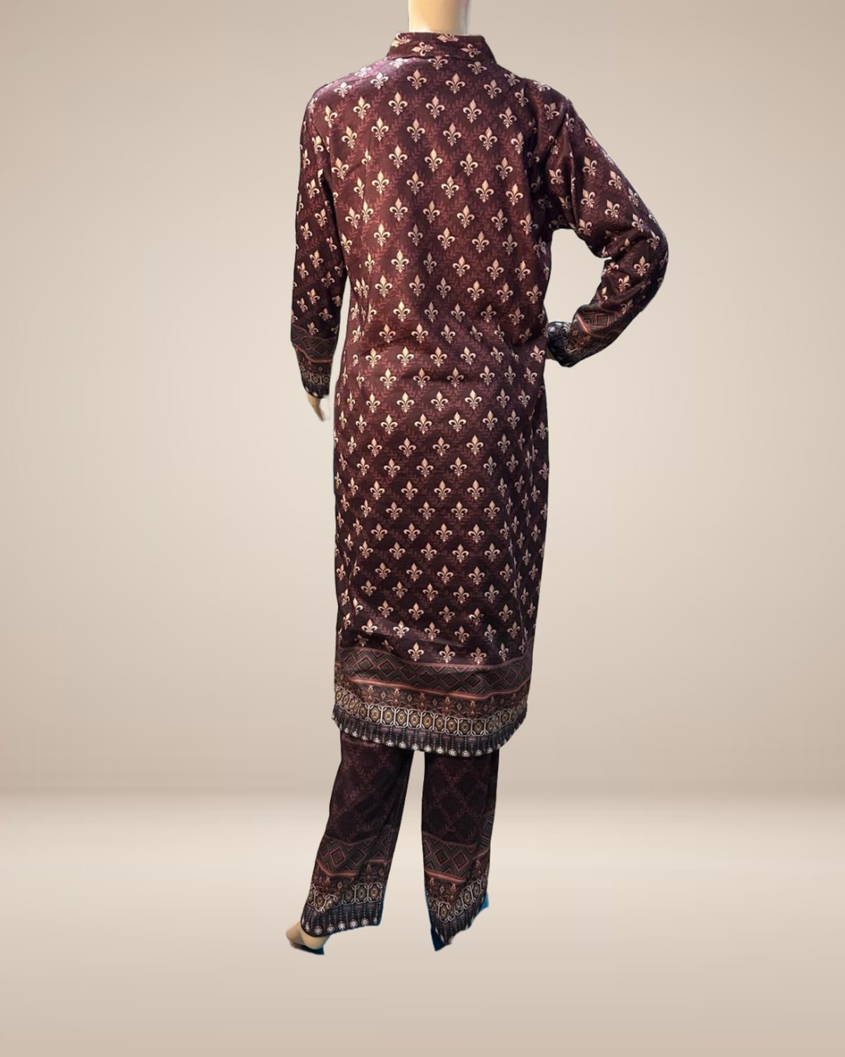 This brown velvet co-ord set for women is designed for effortless festive dressing with a rich, luxurious finish. Crafted in plush velvet, the kurta features intricate ethnic-inspired detailing, paired with matching straight-fit pants for a polished silhouette. The deep brown hue adds warmth and elegance, making it ideal for winter festivities, intimate celebrations, and evening gatherings.