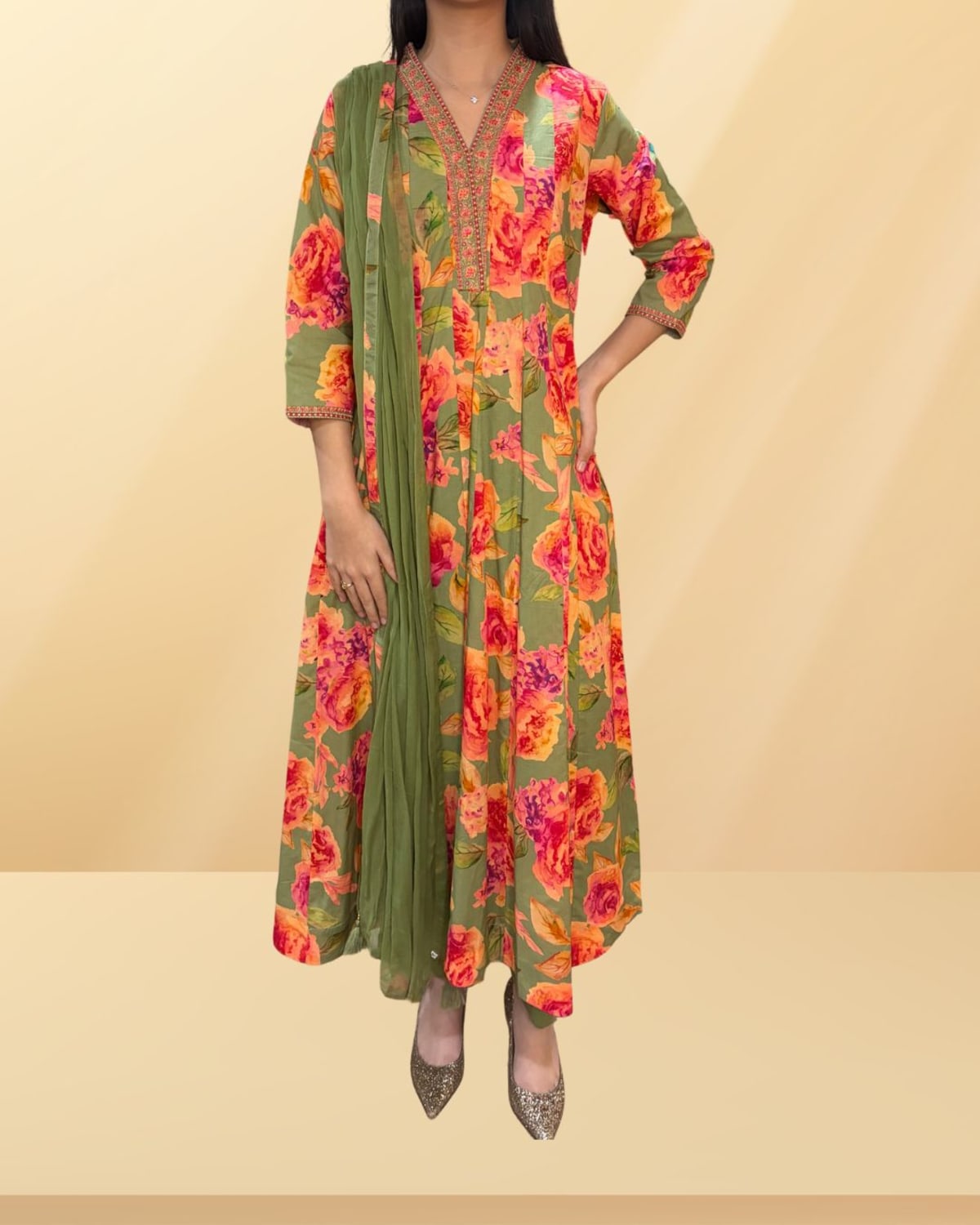 Floral Cotton Anarkali Suit