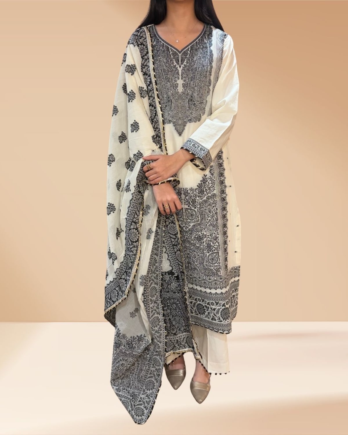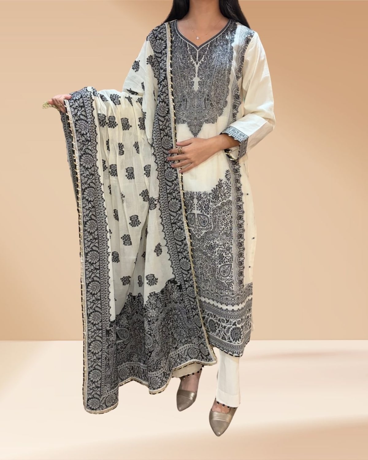 Experience the ethereal charm of our White Weaving Suit, a masterpiece designed for the woman who values tradition with a modern, "Luxe" twist. This pristine ensemble is meticulously tailored and stitched, featuring a full inner astar (lining) for a professional, non-see-through finish and all-day comfort.